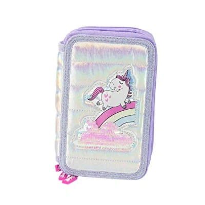 Girabrilla Nice Group Unicorn Pencil Case with 3 Compartments for Children, Duvet Effect, Purple