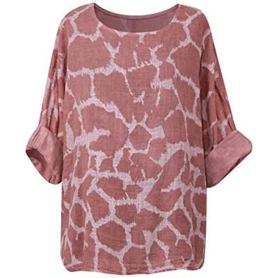 Giraffe Print Ladies Crop top Italian Stylish Tunic Summer Style Casual wear Women Shirt Size 10 18 UK (One UK, Dusty Pink)