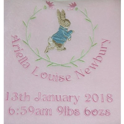 Girl’s Personalised Little Rabbit Super Soft Fleece Birth Blanket. (Pink)