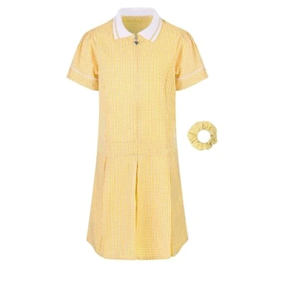 Girl's School Uniform Pleated Gingham Summer Dress + Hair Bobble Age 3 4 5 6 7 8 9 10 11 12 13 14 15 16 17 18 Years Gold