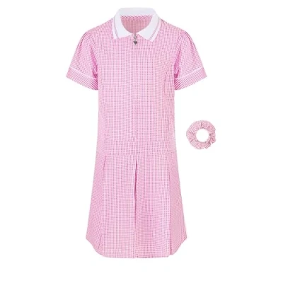 Girl's School Uniform Pleated Gingham Summer Dress + Hair Bobble Age 3 4 5 6 7 8 9 10 11 12 13 14 15 16 17 18 Years Pink