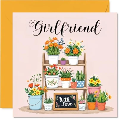 MAKE YOUR GIRLFRIEND SMILE WITH THIS UNIQUE BIRTHDAY CARD: This exceptional quality Girlfriend birthday card for her shows the design 'Girlfriend With Love'. If you are looking for a beautiful birthday card Girlfriend for her, then then this happy birthday Girlfriend card is bound to make her smile. Not just a birthday card for Girlfriend this could also be a birthday gifts for Girlfriend, Partner or Companion. WHAT DO YOU GET: The card is printed on one side and BLANK ON THE INSIDE to allow you to write your very own message. The unique fun design is printed on a specially sourced and environmentally responsible board. At 360 microns thick the natural white one-sided gloss board has a quality look and feel. Supplied with a coloured gummed envelope to complement the design and ready to be sealed and sent in the post. Great Girlfriend birthday cards, Partner birthday card. NO INK SMUDGES: There is nothing worse than writing inside a card to find that the shiny surface makes the ink smudge. This is why we use a high quality one sided coated board. The uncoated side will absorb more of the ink from your pen to make smudging a thing of the past. Girlfriend birthday cards, Girlfriend birthday cards from Boyfriend. SIZES: Greeting Card = 145mm x 145mm, Envelope = 155mm x 155mm, Card Thickness = 360 micron. Happy birthday Girlfriend, Girlfriends birthday card, Girlfriend cards birthday, birthday card Girlfriend, happy birthday Girlfriend card, Girlfriend gifts from Boyfriend. MADE AND QUALITY CHECKED IN THE UK: We print and manufacture all our products right here in the UK so you can be sure of a fast turnaround and a product that is expertly made. Using environmentally responsible premium board our card is conscious of the responsible management of the world's forests - happy birthday card Girlfriend, Girlfriend birthday cards.