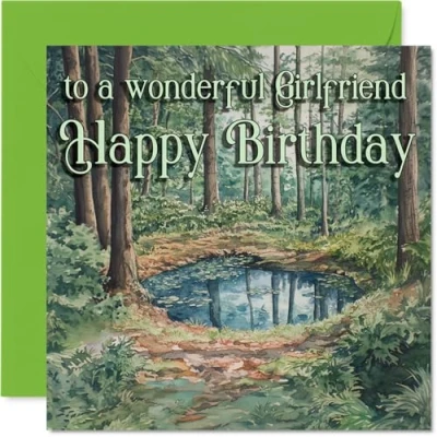 Girlfriend Birthday Card Outdoor Watercolor Pond Happy for from Boyfriend Partner, 145mm Bday Greeting Cards