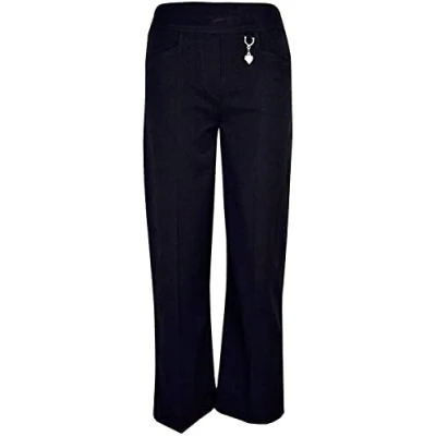 Girls Half Elasticated Pull UP School Uniform Trousers with Heart Pendant (as8, Age, 14_Years, 15_Years, Slim, Navy)
