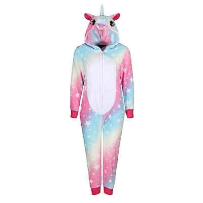 Girls Onezee All in One Animal Novelty Hooded Fleece Leopard Unicorn Tiger Costume 7 to 13 Years (Unicorn 13)
