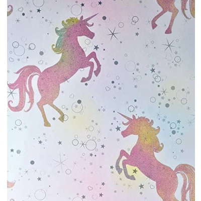Girls Pink Purple Unicorn Theme Silver Glitter Vinyl Wallpaper Metallic Effect