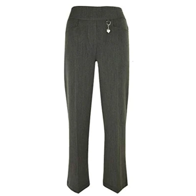 Girls Pull UP School Trousers Uniform with Heart Pendant Half Elasticated Grey...
