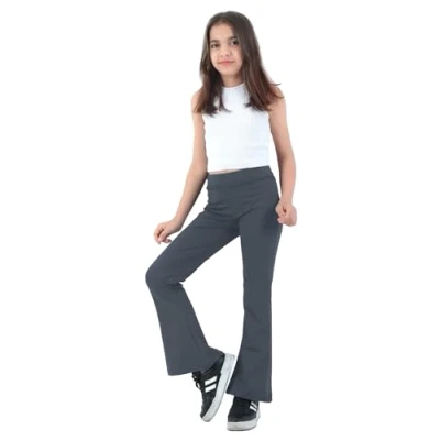 Girls School Trousers Pull Up Bootleg Style Elasticated Waist Finely Stitched Ribbed Stretch Fabric (UK, Age, 16 Years, 17 Regular, Grey)