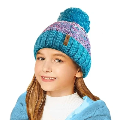 Girls STORMACTIVE 100% Waterproof Warm Cable Knit Winter hat with Pompom and Thermal Cosy Liner Turq