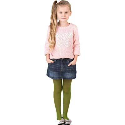 Girls Tights 15 Denier Lycra By Sentelegri, Soft Shine Bridesmaids,Age2 12 (Age 9 10, Green)
