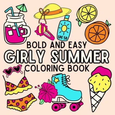 Girly Summer Bold and Easy Coloring Book: Fun & Cute Designs for Kids, Teens Adults