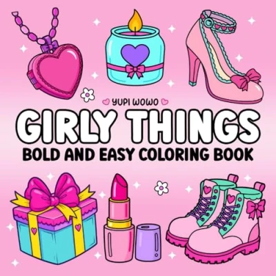 Girly Things: Bold & Easy Coloring Book for Adults Kids, Simple and Big Designs Relaxation Featuring Lovely Illustrations (Bold Books)