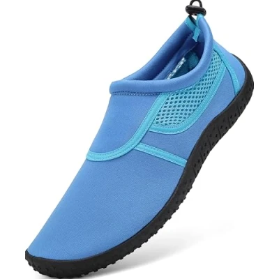 1. 【Water Beach Swim Shoes】Premium Quick-Dry Neoprene & Polyester – Barefoot Comfort Ultra-soft neoprene-polyester blend (hugs your feet like socks!) designed for barefoot water shoes and surfing. Breathable diving material with quick-dry tech – perfect for swimming, beach running, pool yoga, and driving. 2. 【Non-Slip Aqua Shoes】Anti-Skid Spandex Rubber Sole for Surfing & Running Textured rubber outsole with micro-air holes – grips wet rocks, pool tiles, and sand. Built for sea shoes adventures: fishing, boating, camping, or outdoor running. 3. 【Lightweight Barefoot Swim Shoes】Sock-Like Lining (90% Polyester + 10% Elastane) Moisture-wicking interior dries 2x faster than regular swim shoes. At 150g/shoe, it’s lightweight and foam–stretchy for barefoot comfort in yoga, gym, or water parks. 4. 【Travel-Ready Sea Shoes】Foldable & Flexible for Driving, Surfing, Hiking Ultra-thin, packable design – slips into any bag! Effortless to wear for driving, post-surf walks, or hiking trails. Ideal aqua shoes for spontaneous adventures. 5. 【UK 3-12.5 Sizes】Unisex Breathable Swim Shoes Custom-fit sizes (UK 3-12.5) with barefoot-friendly stretch. Sleek water beach shoes pair with swimwear, gym shorts, or casual outfits – your go-to for pool, yoga, or beach days.