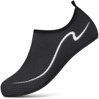 1. 【Water Beach Swim Shoes】Premium Quick-Dry Neoprene & Polyester – Barefoot Comfort Ultra-soft neoprene-polyester blend (hugs your feet like socks!) designed for barefoot water shoes and surfing. Breathable diving material with quick-dry tech – perfect for swimming, beach running, pool yoga, and driving. 2. 【Non-Slip Aqua Shoes】Anti-Skid Spandex Rubber Sole for Surfing & Running Textured rubber outsole with micro-air holes – grips wet rocks, pool tiles, and sand. Built for sea shoes adventures: fishing, boating, camping, or outdoor running. 3. 【Lightweight Barefoot Swim Shoes】Sock-Like Lining (Polyester + Elastane) Moisture-wicking interior dries 2x faster than regular swim shoes. At 150g/shoe, it’s lightweight and foam–stretchy for barefoot comfort in yoga, gym, or water parks. 4. 【Travel-Ready Sea Shoes】Foldable & Flexible for Driving, Surfing, Hiking Ultra-thin, packable design – slips into any bag! Effortless to wear for driving, post-surf walks, or hiking trails. Ideal aqua shoes for spontaneous adventures. 5. 【UK 3-12.5 Sizes】Unisex Breathable Swim Shoes Custom-fit sizes (UK 3-12.5) with barefoot-friendly stretch. Sleek water beach shoes pair with swimwear, gym shorts, or casual outfits – your go-to for pool, yoga, or beach days.