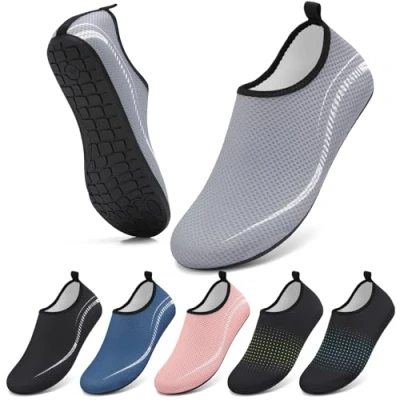 Comfortable & Breathable: These unisex water shoes are made of elastic mesh material, offering a soft, sock-like fit that molds to your feet. Lightweight, flexible, and space-saving for easy packing—they’re the perfect travel companion for your adventures. Quick-Drying: The swim shoes are designed to drain water rapidly, keeping feet dry and comfortable while maintaining a healthy foot environment with every step. Slip-Resistant & Protective: beach shoes The soft yet sturdy rubber sole offers slip-resistant grip, effectively protecting your feet from rocks and sharp surfaces during activities. Convenient Design: sea shoes Thanks to the elastic construction, these shoes are easy to put on and take off. The smooth collar design prevents chafing during wear. Versatile Use: These stylish and functional swim socks are ideal for the beach, diving, snorkeling, swimming, pool workouts, weightlifting, sailing, kayaking, cruises, yoga, windsurfing, cycling, jogging, fishing, beach volleyball, water aerobics, walks, or other outdoor water sports. No matter where your adventures take you—they’re ready for any challenge.