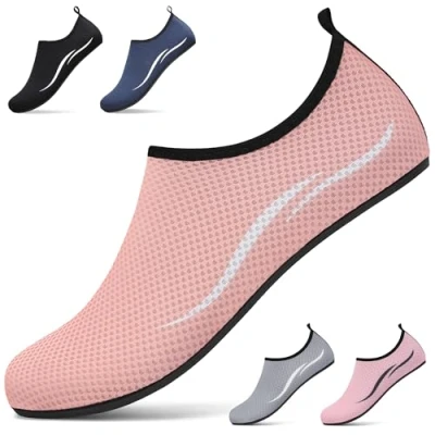 gitzing Water Beach Swim Shoes Women Quick Dry Sea Men Breathable Aqua Lightweight Barefoot for Surfing Running Driving Pool Yoga, Pink 3 UK/35 EU