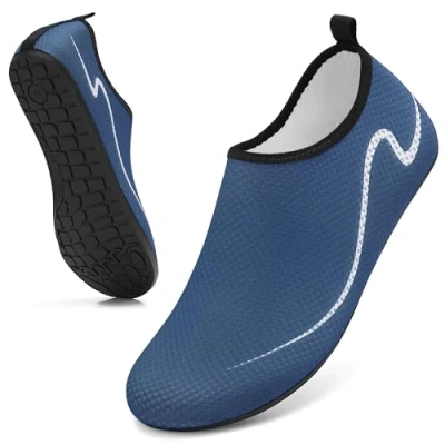 GITZING Water Shoes for Women Men Beach Quick Dry Swim Aqua Socks Breathable Barefoot Surfing Running Driving Pool YOG, Dark Blue 3 UK/34 EU