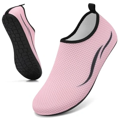 gitzing Water Shoes for Women Men Beach Quick Dry Swim Aqua Socks Breathable Barefoot Surfing Running Driving Pool Yoga(Pink,34 EU/2.5 UK)
