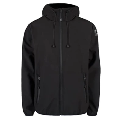 100% polyester softshell; 320 g/m² Full zip Side pockets with zip Hood Patch with PVC insert, elasticated waistband and cuffs.