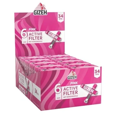 GIZEH Pink Active Filter Activated Carbon Slim 6 mm Diameter with from Coconut Shell 27 Length in Pack of 10 x 34 Filters