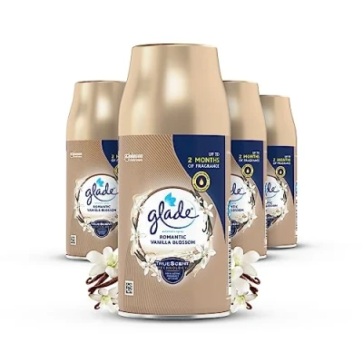 This room spray fragrance is crafted with notes of vanilla blossoms white orchid and sandalwood to inspire the feeling of sweet daydreaming Glade Automatic Spray Refill fits into the new, completely re-designed battery-operated holder to provide up to 60 days of automatic freshness Glade Automatic Air Freshener Refills provide a fresh burst every 9, 18 or 36 minutes New, completely re-designed battery-operated Glade Automatic Spray provides up to 60 days of automatic freshness Romance, We have a fragrance for that