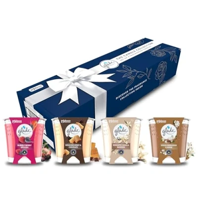 Glade Jar Candle Gift Pack, Scented Infused with Essential Oils, 4 Scents including Berry, Chocolate, Vanilla, Sandalwood & Jasmine, x 112g