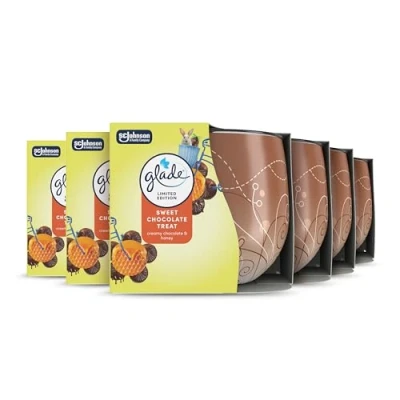 Burn time of 25 hours of Glade fragrance Wax made without palm oil Sweet Chocolate Treat with notes of chocolate, warm spices and honey Fragrance crafted by master perfumers and infused with essential oils and made without phthalates, parabens, formaldehydes Excluding fragrance and dyes