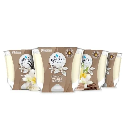 Glade Jar Candle, Scented Candle Infused with Essential Oils, Up to 44 Hour Burn Time, Vanilla Blossom, Pack of 4 (4 x 224g)