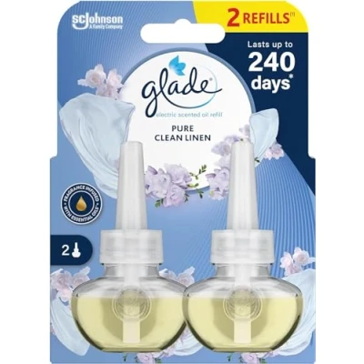 Tell your story with air and enjoy up to 240 days* (*based on 12 hours use/day on low setting) with our air freshener plugin twin refills Glade uses a TrueScent Technology, a proprietary blend of ingredients that provides a lasting feeling of clean Discover Glade Plugin which has fragrance infused with essential oils made without phthalates, parabens, formaldehydes Switch things up with some flower power and elevate the energy in any room with Glade air freshener Pure Clean Linen with notes of crisp air, fresh laundry, and lily of the valley