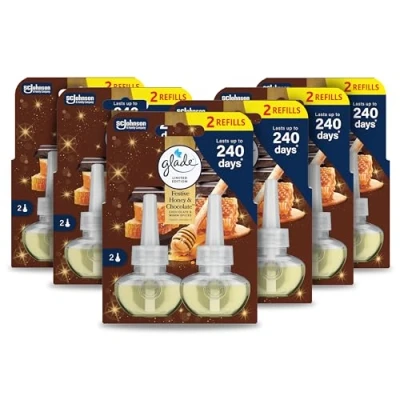 Glade Plug in Air Freshener Refill, Electric Scented Oil Room Freshener, Infused with Essential Oils, Limited Edition Christmas Festive Honey & Chocolate, Pack of 6 Duos (12x20ml)