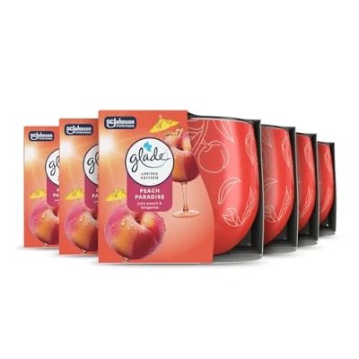 Glade Scented Candle Sleeved, Infused with Essential Oils, Made Without Palm Oil, Up to 25 Hour Burn Time, Peach Paradise, Pack of 6 (6x108g)