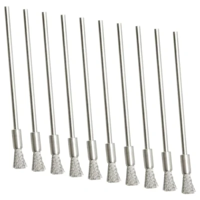 【DURABLE MATERIAL】The brush head is made of high quality stainless steel, which is sturdy and safe to use, not easy to wear or break. Fine bristles can effectively remove stains from small parts that are out of reach of your fingers. 【SUFFICIENT QUANTITY AND SUITABLE SIZE】the product contains 10 rust removal wire brushes, which is a sufficient quantity for daily use and replacement. The brushes are of medium size, with a handle diameter of 3 mm and a head diameter of 6 mm. 【PORTABLE & SPACE SAVING】These wire brushes for metal cleaning are small and compact, they don't take up too much space in your toolbox, easy to store and use, perfect for taking on the go. 【EFFICIENT CLEANING CAPACITY】These metal brushes are simple and easy to use and can be used directly on the item to be cleaned, but care should be taken to avoid using them on scratchy items and use them with care to prevent pricking your fingers. 【MULTIFUNCTIONAL USE】The stainless steel wire brushes are versatile and can be used to clean a wide range of small parts and remove burrs, rust, dust, etc. They are suitable for use on most hand drills or drill press tools with 3mm chucks.