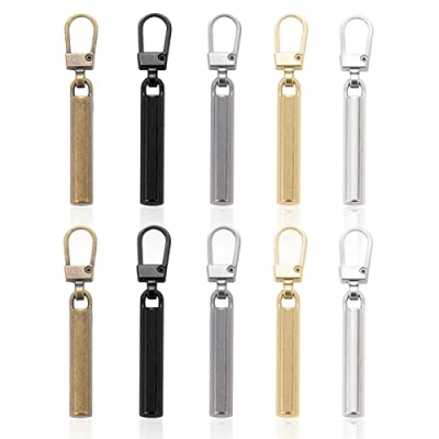 【WHAT YOU WILL GET】You will receive 10 replacement zipper pull in a total of 5 different colours (silver, black, gold, bronze, grey), 2 of each colour. Enough quantity to meet your daily use needs. 【PREMIUM MATERIAL】Made of high quality zinc alloy, strong and durable, not easily broken or deformed, anti-corrosion and rust, can be used for a long time. 【MULTIPLE CHOICES】The pendant zipper pull size is 40 x 10mm and the cylinder one size is 55 x 10mm. They fit most zip head sizes and you can choose different colours to match your items. 【EASY TO USE】No tools are required, our zipper pull can be fitted and removed quickly. Once installed, the zip slider will stay in place for a long time. 【OCCASIONS】They can be used to replace zips on jackets, bags, shoes, handbags, purses, jeans, shorts, boots, backpacks and more, making it a must-have little part of your home.