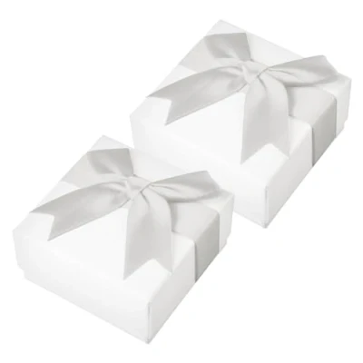 【Product Includes】 You will get 2 square kraft paper jewellery gift boxes, medium size, enough to meet your needs. 【High Quality Material】 The gift box is made of high quality thick cardboard sturdy and durable not easy to deform. The ribbon bow on the lid of the box is exquisite and beautiful. 【Elegant Design】The top of the gift box lid is decorated with a delicate grey ribbon bow adding a touch of elegance to the perfectly wrapped compact box. 【THOUGHTFUL LINING】Removable foam pads are included in each small gift box to firmly support rings, earrings and necklaces and protect your precious items from scratches. 【MULTIFUNCTIONAL GIFT BOX】The bow is designed with multiple grooves to hold necklaces earrings rings bracelets cufflinks and other jewellery accessories at the same time. Perfect gift choice for birthdays weddings or baby shower!