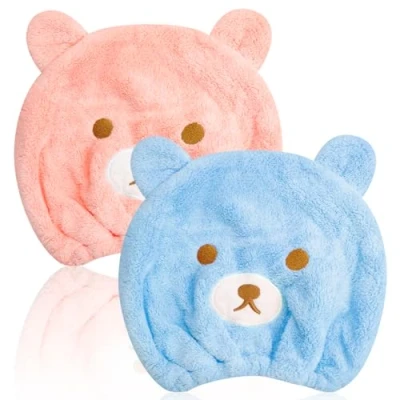 【PREMIUM MATERIAL】Crafted from ultra-fine coral fleece microfiber, our shower cap is soft, breathable, highly absorbent, and durable. It ensures a comfortable fit without causing damage to the hair. 【PRACTICAL DESIGN】Perfect for use after washing hair, this cap securely wraps wet hair, preventing water droplets from dripping everywhere. It's also an excellent choice for protecting hair during face washing routines. 【ADORABLE CARTOON BEAR PATTERN】The cute cartoon bear design adds a delightful touch, capturing the attention of young girls. It makes for the perfect gift for girls with long hair. 【VERSATILE APPLICATION】Ideal for daily use at home or during travel, our shower cap facilitates quick hair drying, allowing you more time for makeup, reading, exercise, and other activities. 【UNIVERSAL SIZE】With dimensions of 24 x 18 cm (9.44 x 7.08 inches) and an elastic band design, the shower cap fits comfortably on all girls, accommodating various head sizes.