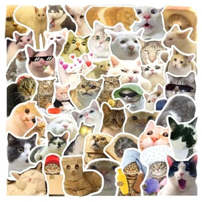 GLADFRESIT 50Pcs Funny Cat Stickers Set, Waterproof Vinyl Meme Stickers, Cute Decals for Water Bottle, Phone Case, Scrapbook, Laptop