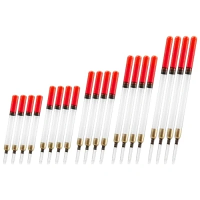 【Rich Accessories】This fishing buoy set includes 5 sizes of buoys, 4 of each size, a total of 20 pieces, to meet your daily fishing needs. 【Various Sizes】5 different length sizes of Fishing Bobbers are available for a variety of fishing scenarios, such as lake fishing, sea fishing, rock fishing, ice fishing, etc. 【High Quality Material】Fishing Floats are Made of durable plastic, lightweight, compact and durable to ensure long-term reliability and stability. 【High Visibility】The use of high visibility paint allows you to visually easily identify the bite of the fish, improving fishing efficiency. 【Practical Function】High sensitivity, no position movement, suitable for still water and running water environment. Good buoyancy, easy to track, can adjust the buoy depth according to personal habits.