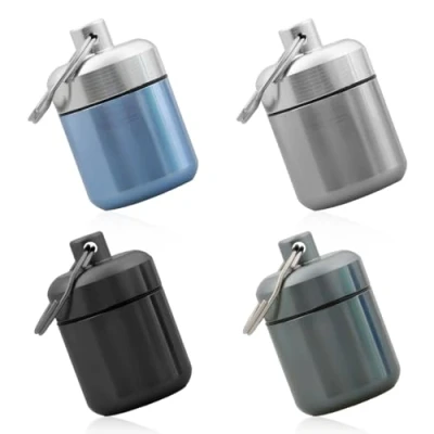【Products Include】We provide red, blue, silver, black four colors of small medicine bottles, easy for users to distinguish and use, more humane. 【Lightweight and Portable】The mini medicine box is small and exquisite, the size of a single medicine bottle is 27mm×42mm, and the weight of a single bottle is only 20 grams, which is easily hung on the key chain or backpack, easy to access at any time. 【Easy to Identify】Screw opening design, flat head cover is easy to open and close, and the top of the pill box is equipped with a key ring for easy hanging and identification. 【Waterproof Design】The Mini Metal Pill Boxes is made of high quality aluminum alloy material and equipped with rubber O-ring with excellent sealing, which effectively prevents leakage and waterproof to ensure that the medicine is dry. 【Diverse and Practical】The Tablets Organiser can not only be used for storing drugs, but also for storing notes, earplugs, powders, spices, etc, to meet a variety of purposes.