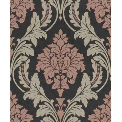 Glam 541656 Non Woven Wallpaper Baroque Black Beige Pink Glitter