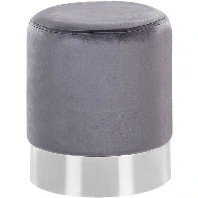 Glam Living Room Velvet Pouffe Round Metallic Band Grey Brigitte