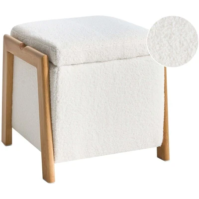 Glam Pouffe with Storage Footstool Boucle Upholstery Living Room Bedroom White Edland