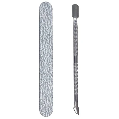 Glam'Up Paris Duo Manicure Files 100/180 Grit + Metal Cuticle Pusher Double Head Sided Nail File