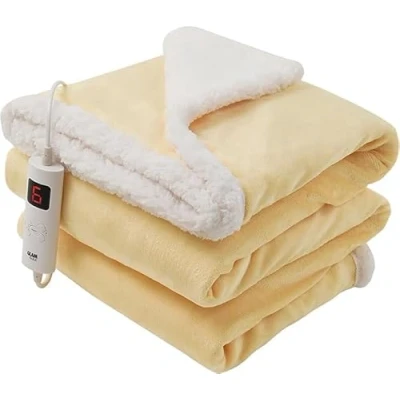 GlamHaus Luxury Electric Heated Throw, Large Reversible Fleece Over Blanket for Sofa or Bed, 160 x 130cm, Heat And Timer Setting, Auto Shut Off, Digital Controller, Machine Washable (Yellow)