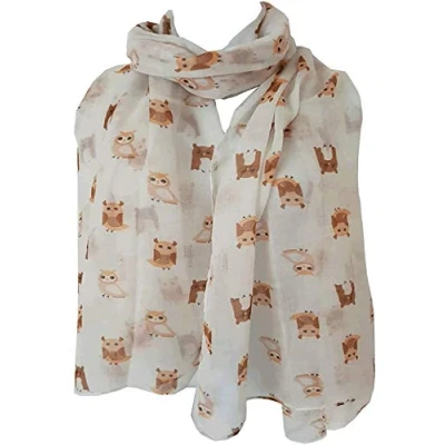 GlamLondon Bird Print Scarf Ladies Lightweight Fashion Oversize Wrap (Christmas Owl White)(Size: L)