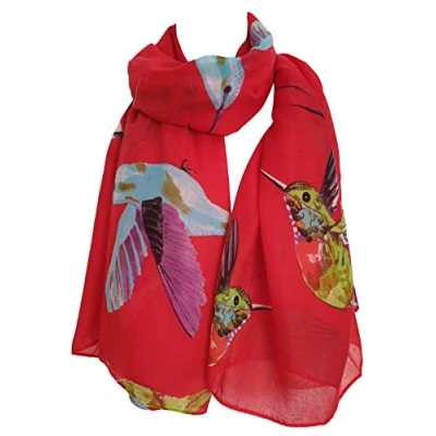 Hummingbird Bird Print Scarf Large Size Approx. 80 X 180 cms (31 X 70 inches) GlamLondon Soft Skin-friendly Washable Material Fashionable: This scarf can be used for different occasions, such as party, or family travel, or at work. Can be worn around your neck, waist, or hair as well as on a hat or handbag, etc Ideal gift for your lover, coworkers, family and friends. Individually wrapped in a clear poly bag
