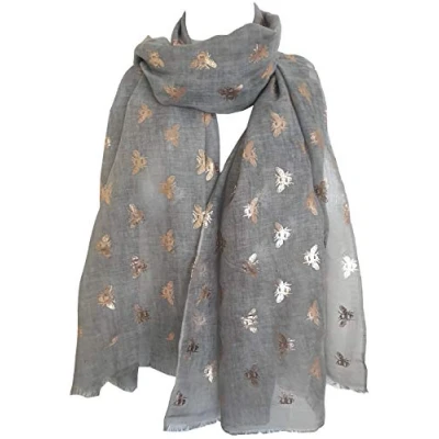 GlamLondon Bumble Bee Print Scarf Ladies Lightweight Fashion Oversize Wrap (Z Glit Grey)
