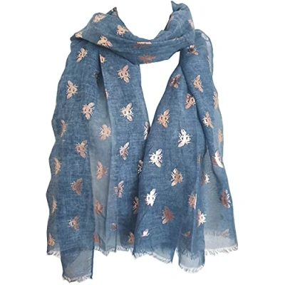 GlamLondon Bumble Bee Print Scarf Ladies Lightweight Fashion Oversize Wrap (Z Glit Navy)