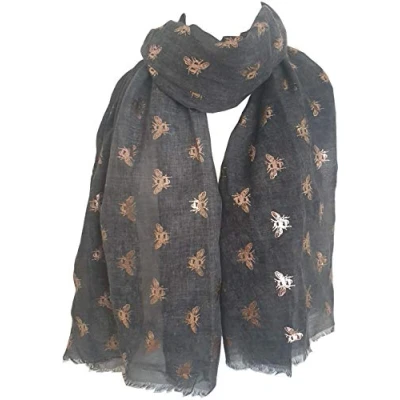 Rose Gold Glitter Bee Charcoal Grey Scarf Long 72 X 180 cms approx. GlamLondon Soft Skin-friendly Washable Material Fashionable: This scarf can be used for different occasions, such as party, or family travel, or at work. Can be worn around your neck, waist, or hair as well as on a hat or handbag, etc Ideal gift for your lover, coworkers, family and friends. Individually wrapped in a clear poly bag