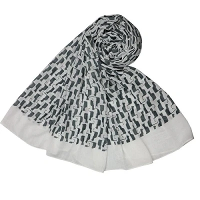 GlamLondon Cats Pattern Scarf Big Size Kitty Cat Animal Printed Women Viscose Mix Wrap (White Grey)