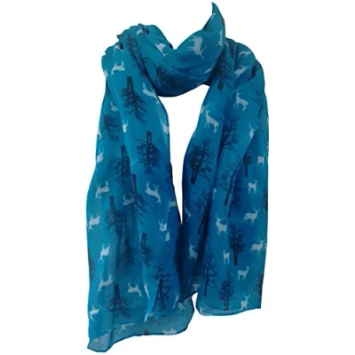 GlamLondon Deer Scarf Winter Deers Fir Tree Reindeer Printed Womens Christmas Scarves Gift (Turquoise)